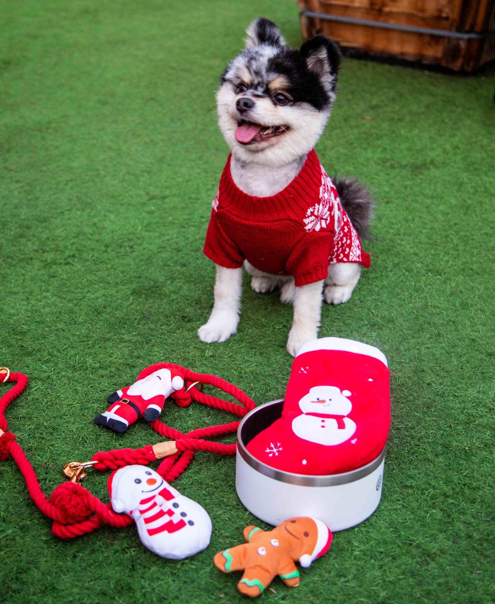 Christmas Stocking Dog Toy with Santa, Snowman and Gingerbread Man toys