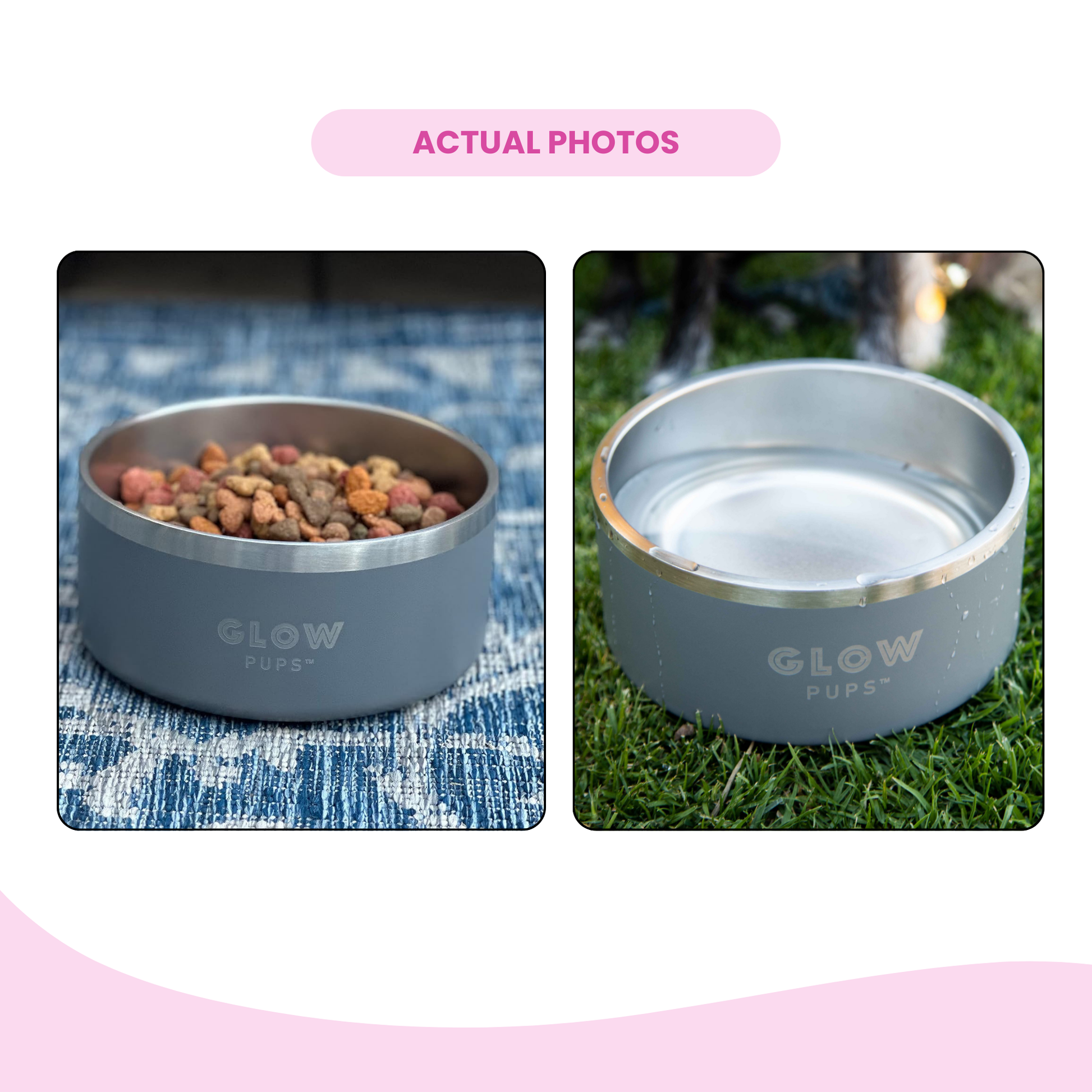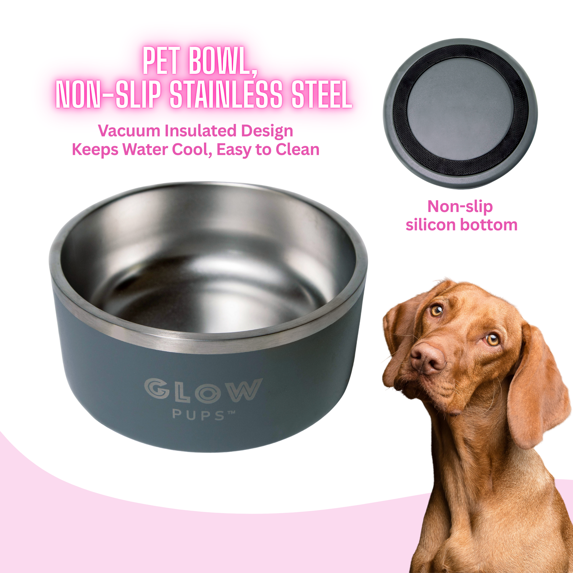 Grey Stainless Steel Dog Bowl 32oz & 64oz - Glow Pups